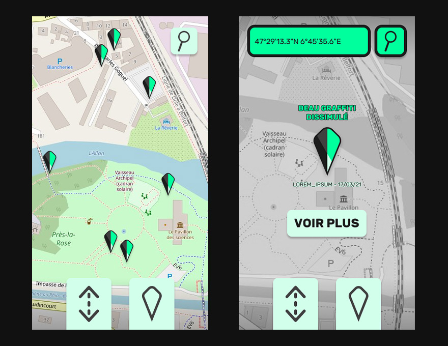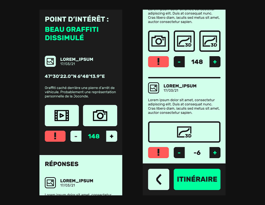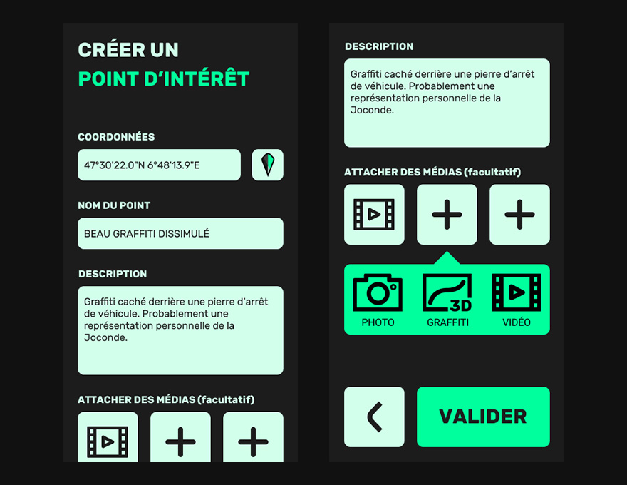 Pour rendre l'expérience incitative et donner l'envie de se déplacer, les points d'intérêts sont présentés comme des contenus de médias sociaux, avec une description et des médias attachés. Les utilisateurs s'étant rendus sur les points d'intérêts eux-mêmes peuvent ensuite commenter et annoter en médias le point d'intérêt en question, ce qui transforme le point d'intérêt en un forum qui lie les utilisateurs de l'application y étant passés dans une discussion collective en différé.